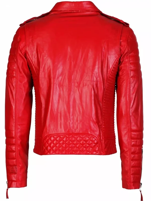 Buy Classic Red Leather Motorcycle Jacket Zipper Style For Sale